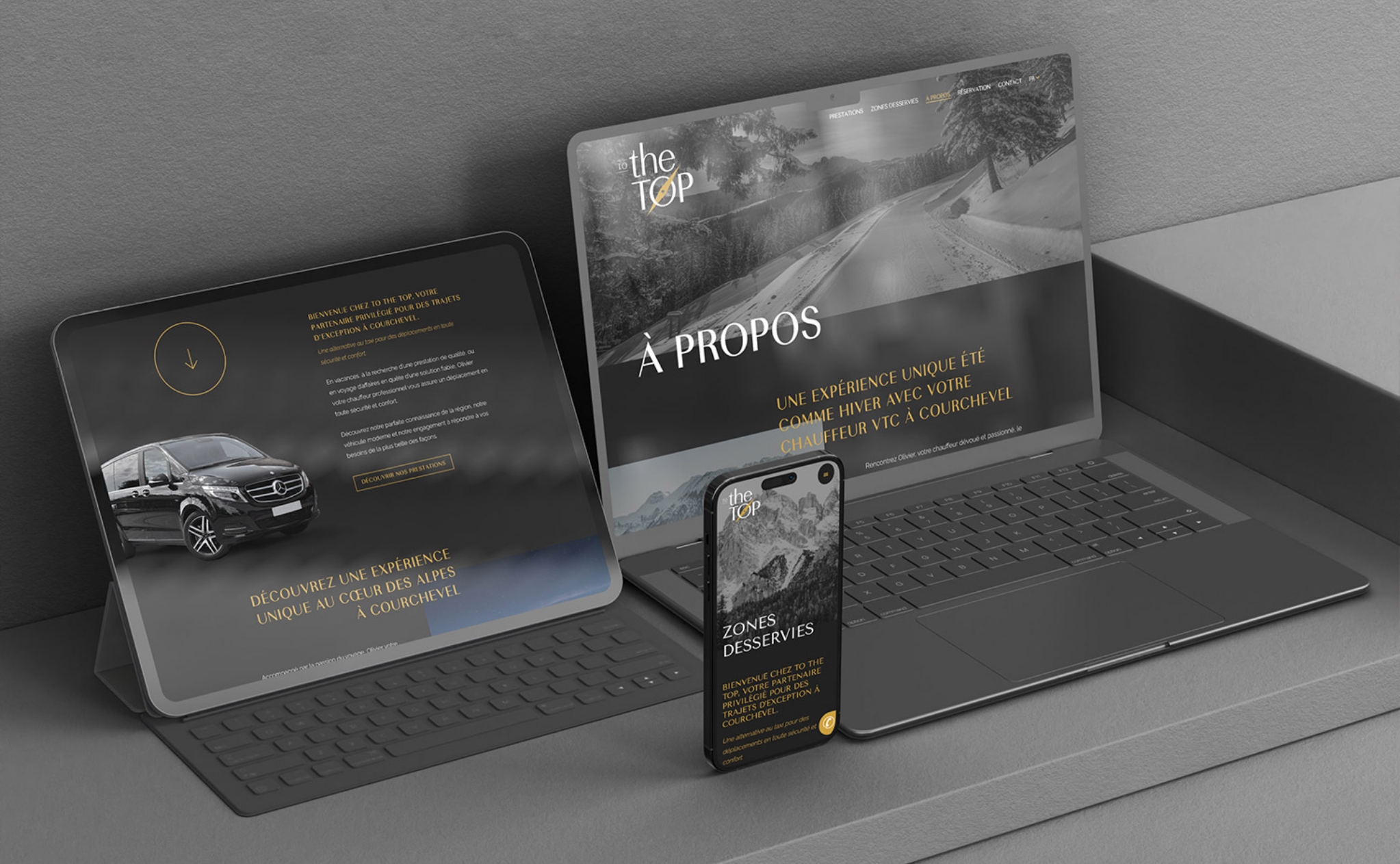 Quand To The Top nous a sollicités, l’enjeu était double : créer une identité visuelle à la hauteur d’une clientèle luxe, élégante sans être froide, et concevoir un site capable de devenir un vrai point d’entrée stratégique sur Courchevel.